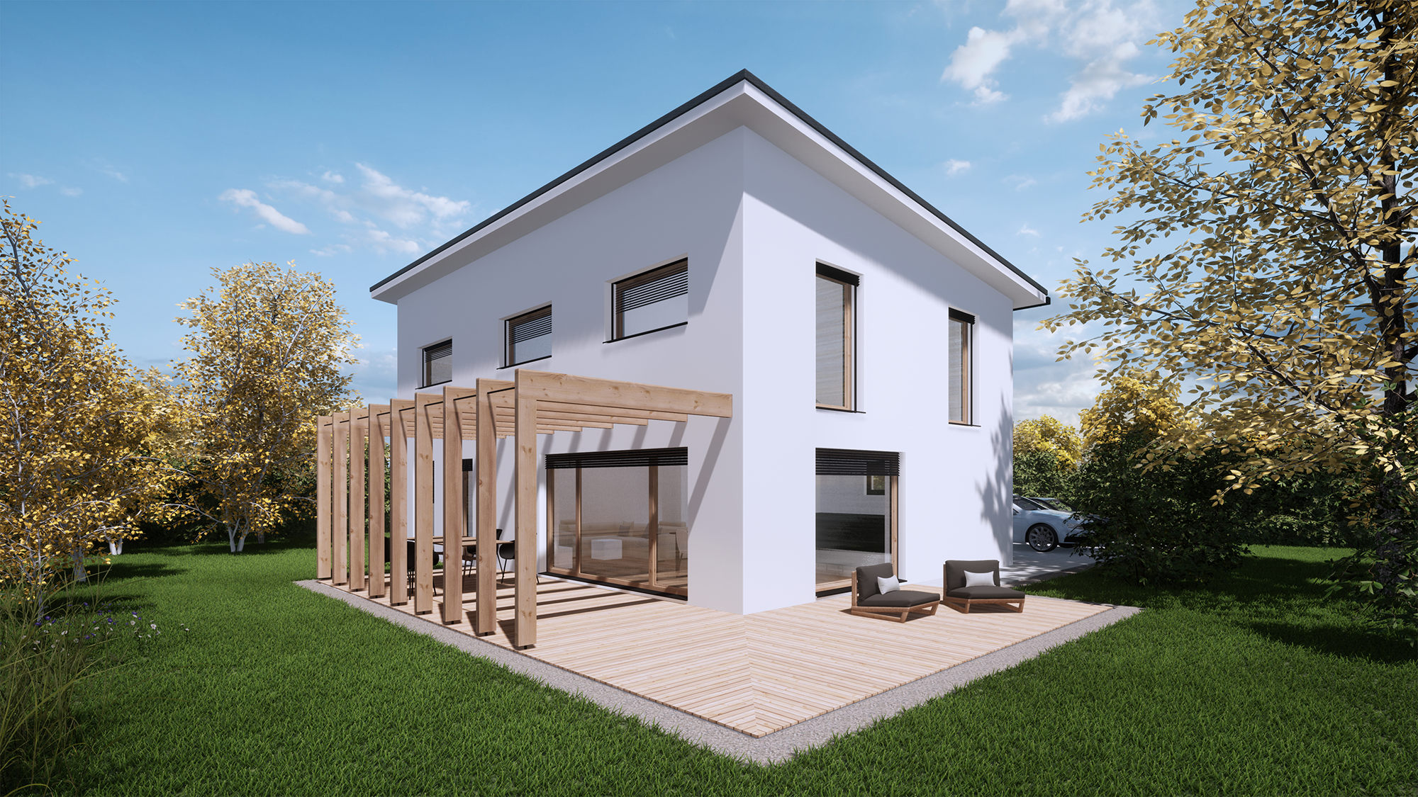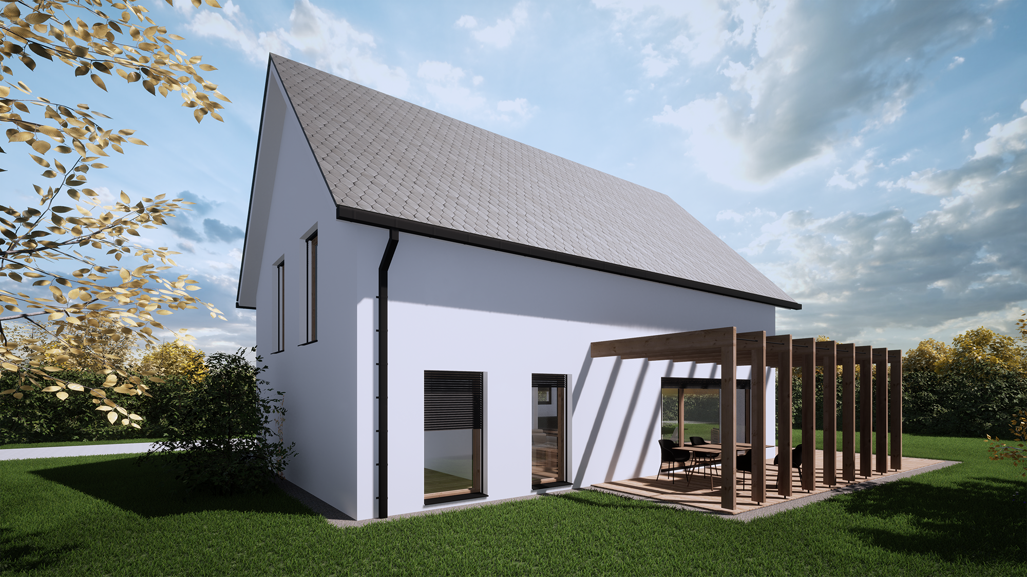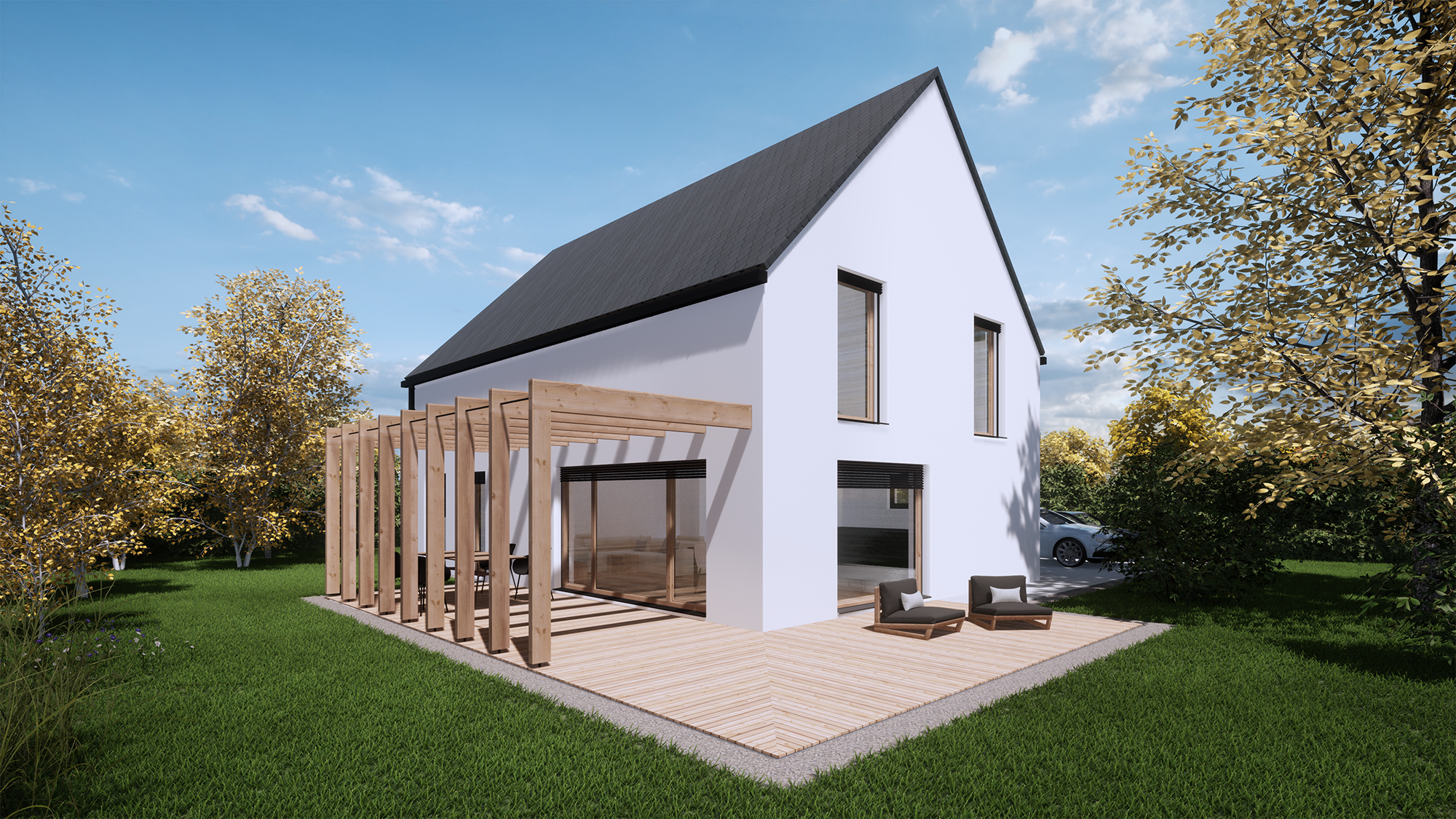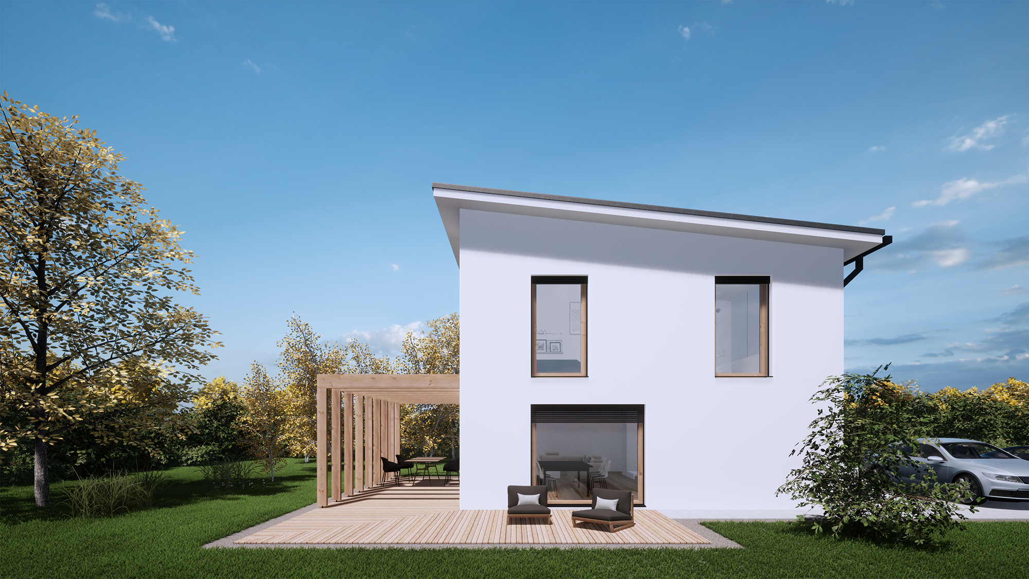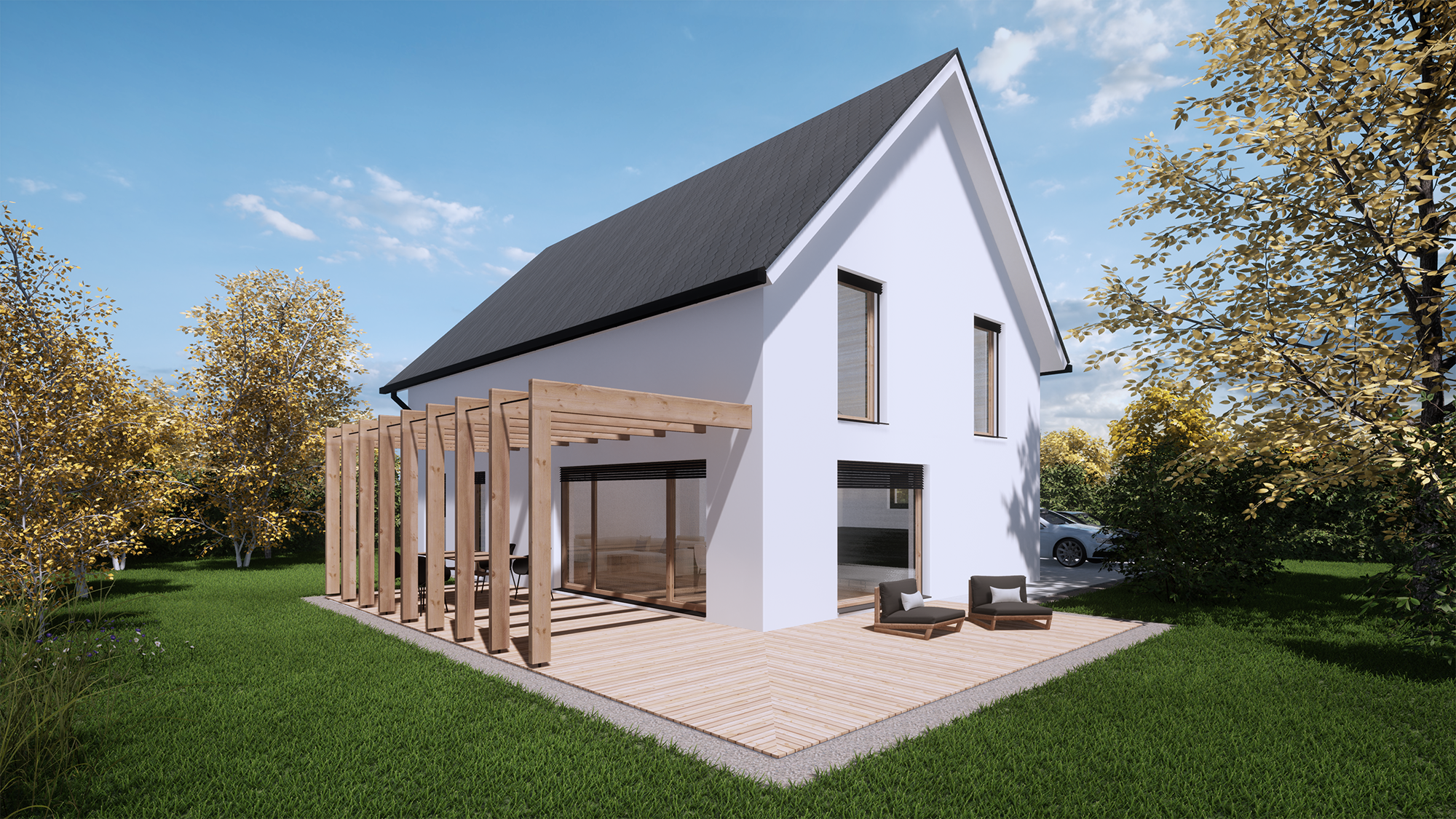Leseno tipsko hišo CI ALFA lahko izbirate v treh velikostih 120m2, 140m2 in 155m2, z različnimi tipi streh ter v različnih fazah gradnje.